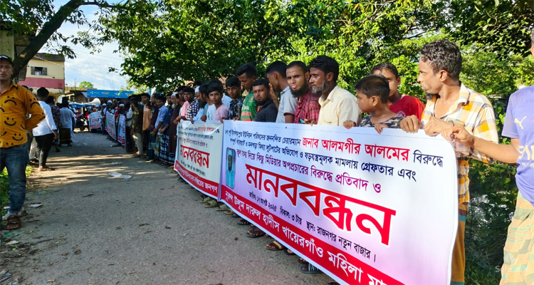 সিলেটের কোম্পানীগঞ্জ উপজেলার ২নং ইসলামপুর পুর্ব ইউনিয়ন পরিষদের চেয়ারম্যান আলমগীর আলমকে গ্রেফতারের প্রতিবাদে ইউনিয়নের জনসাধারণের আয়োজনে ১৭ আগস্ট বিকেলে রাজনগর নতুন বাজারে এক বিশাল মানববন্ধন অনুষ্ঠিত হয়।