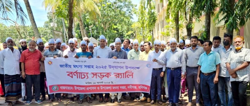 অভয়াশ্রম গড়ে তুলি দেশি মাছে দেশ করি এই স্লোগানকে সামনে রেখে নবীগঞ্জে জাতীয় মৎস্য সপ্তাহ ২০২৫ মেলা উদ্বোধন আলোচনা সভা র্যালী ও পুরস্কার বিতরণী অনুষ্ঠানের আয়োজন করা হয়।