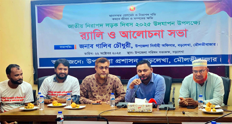 “মানসম্মত হেলমেট ও নিরাপদ গতি কমবে জীবন ও সম্পদের ক্ষতি” এই প্রতিপাদ্যকে সামনে রেখে জাতীয় নিরাপদ সড়ক দিবস-২০২৫ উপলক্ষে মৌলভীবাজারের বড়লেখায় উপজেলা প্রশাসন ও জাতীয় সামাজিক-স্বেচ্ছাসেবী সংগঠন নিরাপদ সড়ক চাই (নিসচা)’র যৌথ উদ্যোগে নিরাপদ সড়ক দিবস পালন করা হয়েছে।