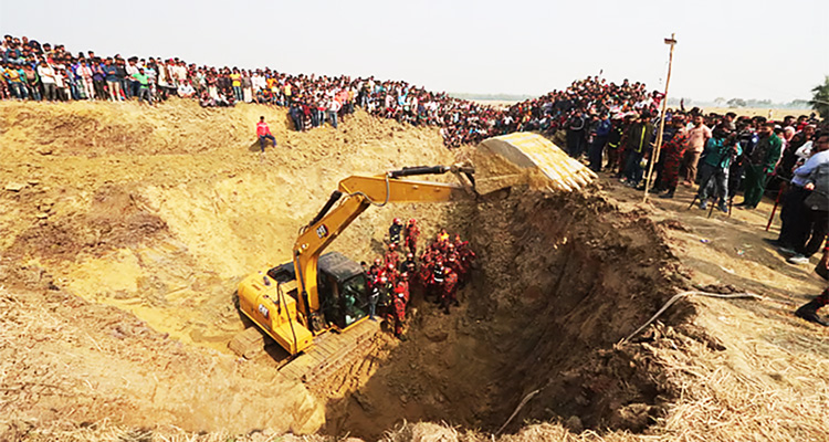 ফায়ার সার্ভিসের রাজশাহী বিভাগের সহকারী পরিচালক দিদারুল আলম জানান, শিশুটি গর্তে পড়ে যাওয়ার খবর তারা পেয়েছেন বেলা আড়াইটার দিকে। এসে দেখেন, স্থানীয় লোকজন চেষ্টা করতে গিয়ে গর্তের ভেতরে কিছু মাটি ফেলেছেন। তারপর থেকে শুরু হয় শিশুটিকে উদ্ধার অভিযান।