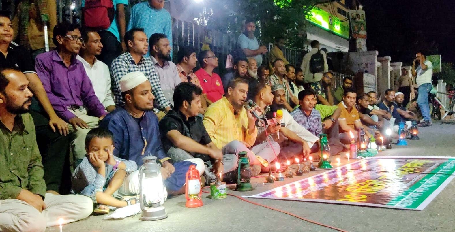 বিদ্যুৎ লোডশেডিংয়ের প্রতিবাদে হারিকেন, কুপিবাতি, মোমবাতি নিয়ে অবস্থান কর্মসূচী