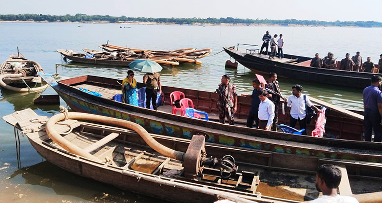 বিশ্বম্ভরপুরে অবৈধভাবে বালু উত্তোলনে নৌকা, ড্রেজার মেশিন জব্দ