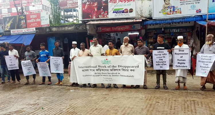 আন্তর্জাতিক গুম সপ্তাহ উপলক্ষে সুনামগঞ্জে অধিকারের মানববন্ধন