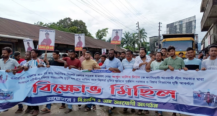 বিএনপি ও অঙ্গ সংগঠনের আয়োজনে বুধবার (২ জুলাই) বিকেল ৩টায় জাফলং মামার বাজার পয়েন্টে এই বিক্ষোভ মিছিল অনুষ্ঠিত হয়। ছাত্রদলনেতা লিটনের মুক্তির দাবিতে এক বিক্ষোভ মিছিল এলাকার প্রধান প্রধান সড়ক প্রদক্ষিণ শেষে মামার বাজার পয়েন্টে প্রতিবাদ সভায় মিলিত হয়। যুব নেতা গফুর আল মামুনের সভাপতিত্বে ও পূর্ব জাফলং ছাত্রদলের সাধারণ সম্পাদক সাব্বির আহমেদ সুজনের সঞ্চালনায় বক্তরা বলেন, বিগত আওয়ামীলীগ সরকারের প্রতিহিংসার শিকার ও রাজনৈতিক ভাবে সাজানো মামলায় লিটনের বিরুদ্ধে আদালত মৃত্যুদণ্ডের রায় দিয়েছে। অভিলম্বে আদালতের দেয়া রায় স্থগিত করে তাকে মুক্তির দাবি জানান। রাজনৈতিক প্রতি হিংসার শিকার লিটনের মৃত্যুদন্ডের রায় স্থগিত করে তাকে মুক্তির ব্যবস্থা গ্রহনে অন্তর্বর্তীকালীন সরকার ও আইন বিচার বিভাগের দৃষ্টি কামনা করা হয়েছে।