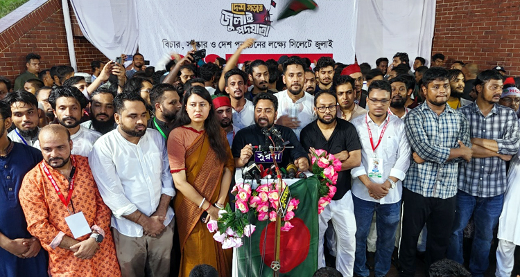 সিলেটের সমাবেশের আগে সুনামগঞ্জ থেকে কর্মসূচি শেষ করে এনসিপি নেতারা শাহজালাল বিজ্ঞান ও প্রযুক্ত বিশ্ববিদ্যালয় ক্যাম্পাসে পদযাত্রা করেন।