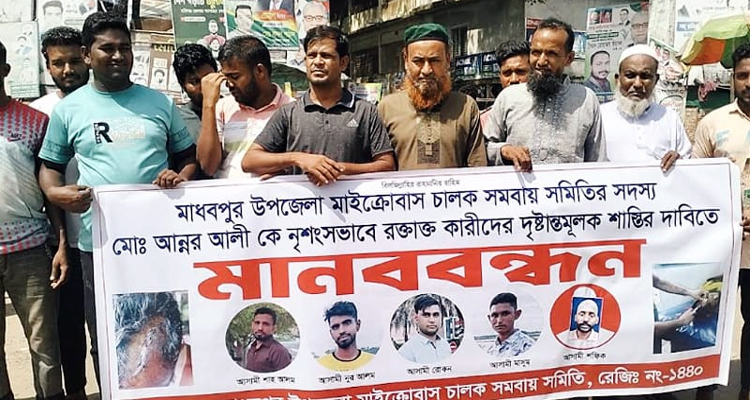 মাধবপুরে চালকের উপর হামলা, আসামিদের গ্রেপ্তার ও বিচারের দাবি