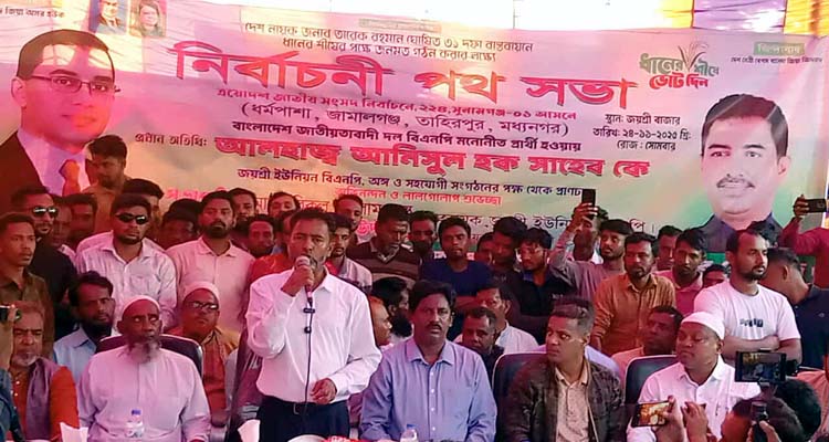 ধর্মপাশায় বিএনপির মনোনীত প্রার্থী আনিসুল হকের পথ সভা
