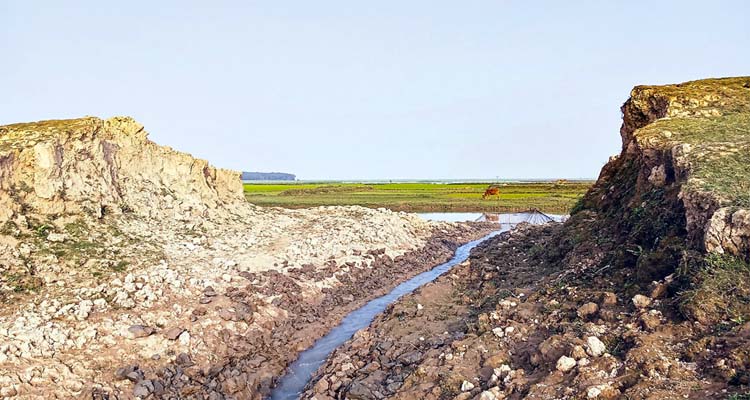 দিরাইয়ে ধীরগতিতে চলছে হাওর রক্ষা বাঁধের কাজ
