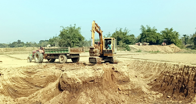 ফসলি জমির মাটি কেটে বাঁধ নির্মাণের অভিযোগ