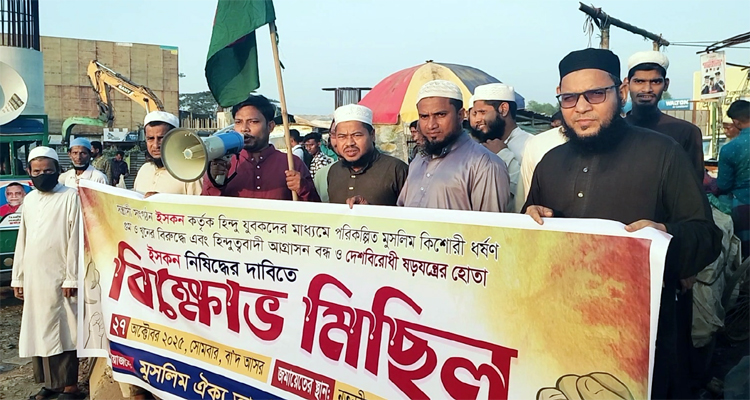 ইসকন নিষিদ্ধের দাবিতে শায়েস্তাগঞ্জে বিক্ষোভ মিছিল