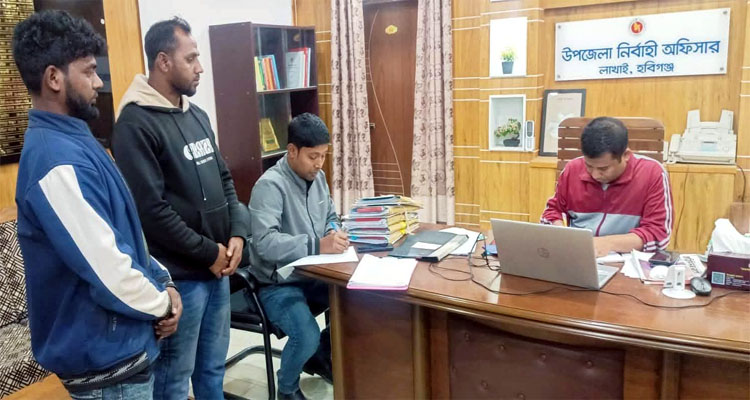 লাখাইয়ে বালু মহাল ও মাটি ব্যবস্থাপনা আইনে এক ব্যক্তিকে জরিমানা