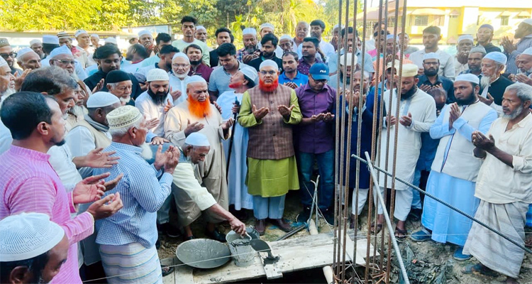 লামাকাজীর মির্জারগাঁও জামে মসজিদের নির্মাণ কাজের ভিত্তি স্থাপন