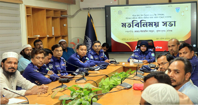 আসন্ন পবিত্র ঈদুল ফিতরকে সামনে রেখে ঘরমুখো মানুষের নিরাপদ যাত্রা এবং জেলার শিল্পাঞ্চলে আইনশৃঙ্খলা পরিস্থিতি স্বাভাবিক রাখতে পরিবহন মালিক-শ্রমিক ও শিল্প কারখানার মালিকদের সঙ্গে পৃথক মতবিনিময় সভা করেছেন হবিগঞ্জের পুলিশ সুপার।